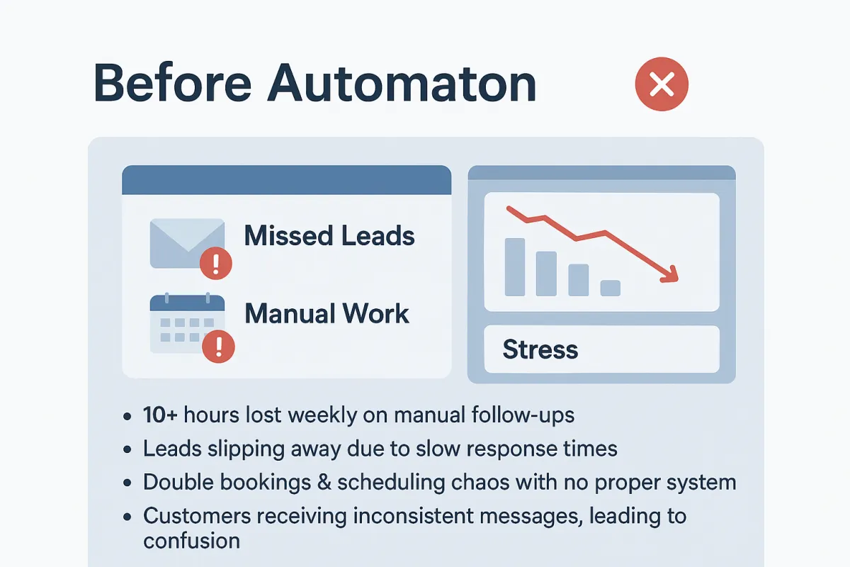 • Owner feeling overworked, stressed, and stuck in repetitive tasks.